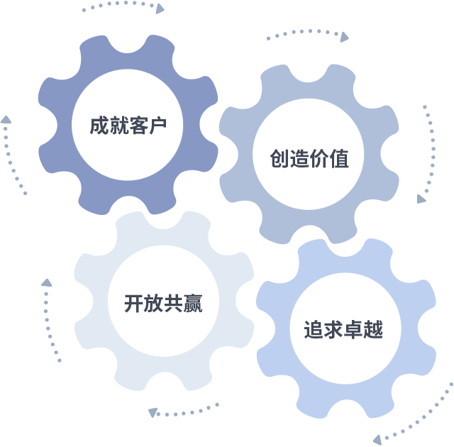 成就客户是一切决策的出发点,创造价值是衡量所有工作的标准,追求卓越是CG电子做事做人的态度,开放共赢是CG电子的格局也是最终的结果。价值观的齿轮环环相扣,推动着组织里的每个人不断向前。